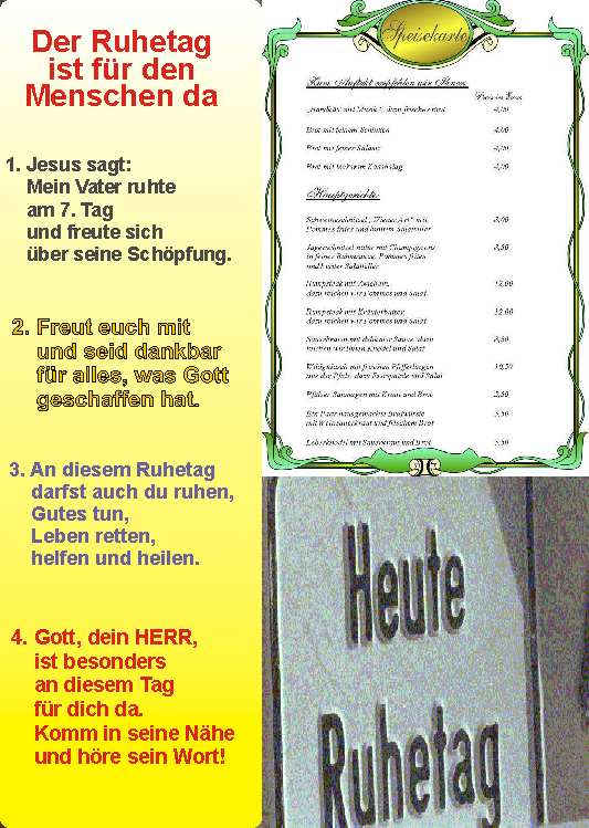 Der dritte Weg in die Freiheit - Das dritte Gebot: ,,Ich bin der Herr,dein Gott. Du sollst den Feiertag heiligen.” -oder - Der Ruhetag ist für den Menschen da