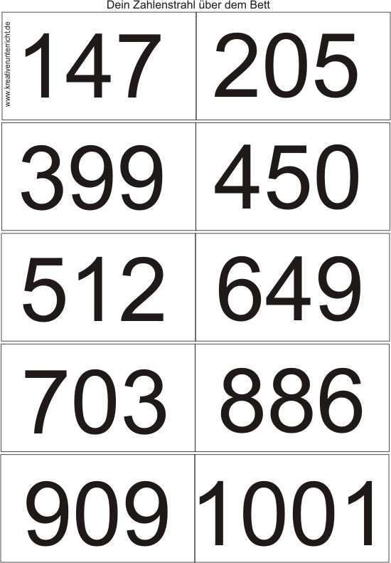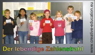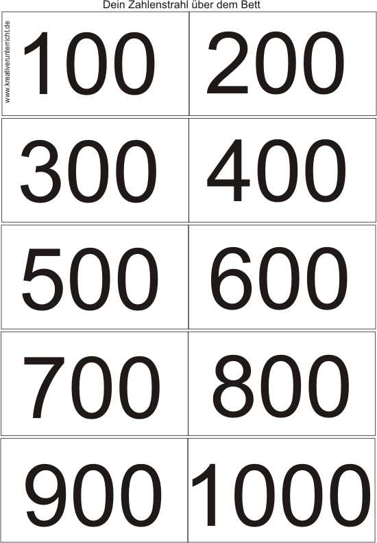 Hinweis für den Lehrer: Die beiden ABs auf DIN A3 vergrößern und als “Lebendigen Zahlenstrahl” einführen, danach erst dem Schüler mit nach Hause geben: Die Schüler bekommen die lamminierten Zahlen und müssen sich vor der Klasse aufstellen. Der Lehrer beginnt mit den glatten Hunderten und verteilt dann die übrigen Zahlen. So entsteht ein “Lebendiger Zahlenstrahl”. Durch tägliches Wiederholen festigt sich die Vorstellung. Mit der zeit sollten auch die Abstände zu den glatten Hunderten brücksichtigt werden.