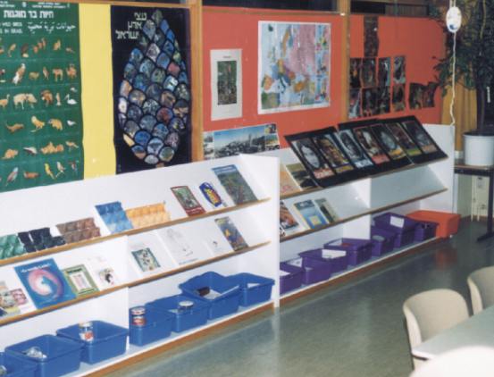 Hier stehen unsere Lernwannen im Regal. Darin befindet sich das Freiarbeitsmaterial für alle Fächer in Dosen, Gläsern, Schachteln und beschrifteten Briefumschlägen.