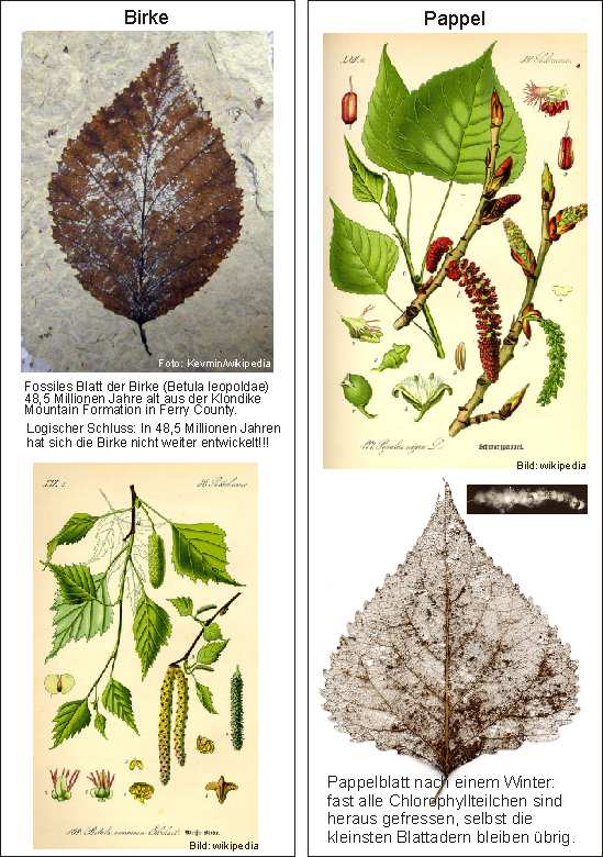 Logischer Schluss:  In 48,5 Millionen Jahren hat sich die Birke nicht weiter entwickelt. Die Birke hat sich auch nicht mit der Pappel oder der Weide oder der Walnuss gekreuzt und neue Baumarten gebildet. Wie ist eine derartige Konstanz der Art möglich?