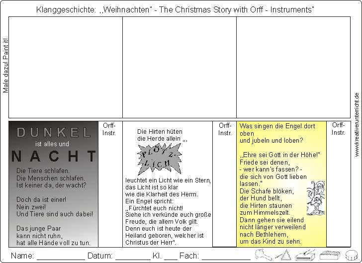 Orff - Singspiel: Weihnachten  -  The Christmas Story with Orff-Instruments -Arbeitsblatt-Worksheet