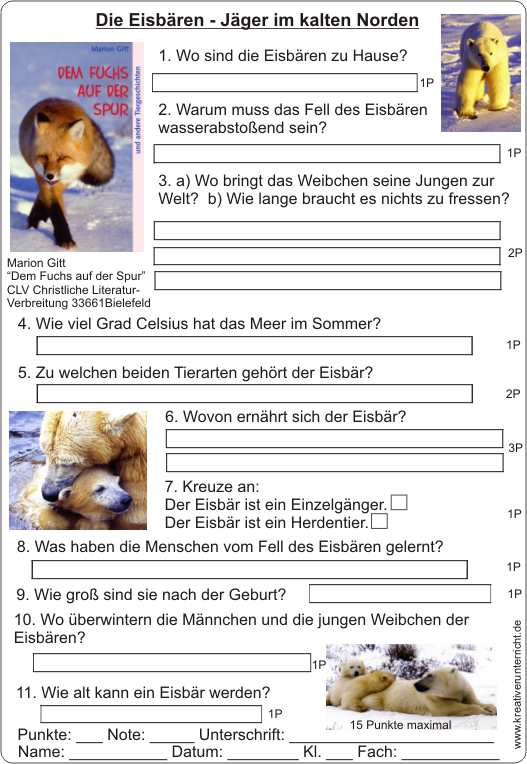 Die Quizfragen zum Eisbären haben die Schüler der Klasse 4b Bechhofen selbst in Einzelarbeit erstellt. Wenn man geeignete Fragen suchen muss, liest man ja den Text noch viel gründlicher.