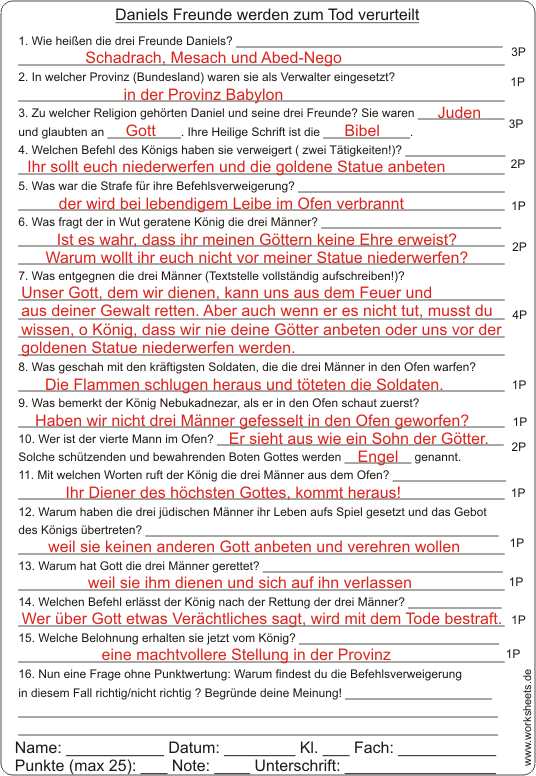 Textblatt, Arbeitsblatt mit Fragen als Probe und Lösungsblatt