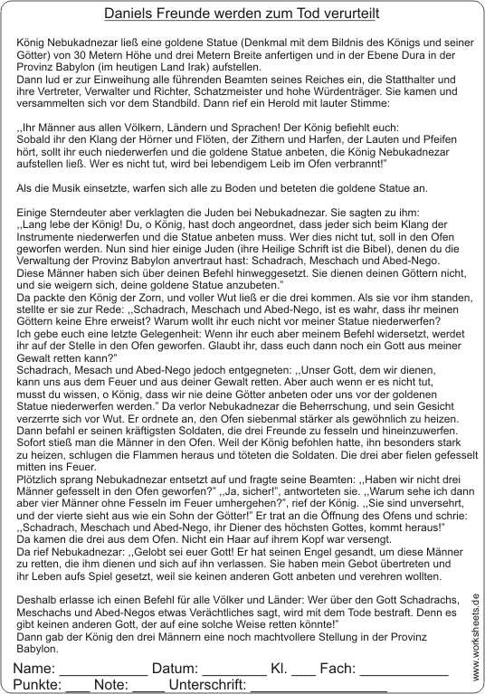 Leseprobe für die Haupt -, Mittel- und Realschule: Daniels Freunde werden zum Tod verurteilt