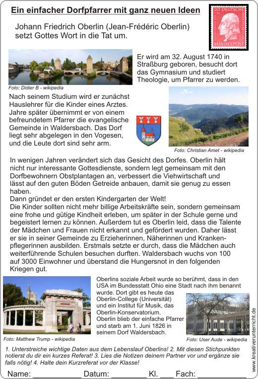 Johann Friedrich Oberlin - ein einfacher Dorfpfarrer und Sozialreformer mit ganz neuen Ideen, der Gottes Wort in die Tat umsetzt.