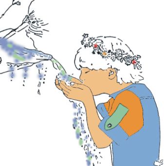 Arbeitsblatt: Zur Herstellung des Büchleins müssen entlang der gestrichelten Linie 6 gleichgroße Seiten ausgeschnitten werden. Wenn sie beschriftet und ausgemalt sind, werden sie zusammen geheftet.