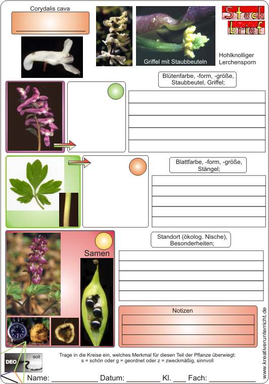 Steckbrief Hohlknolliger Lerchensporn - Corydalis cava Arbeitsblatt zum selbstentdeckenden Lernen