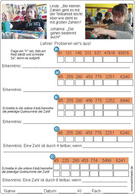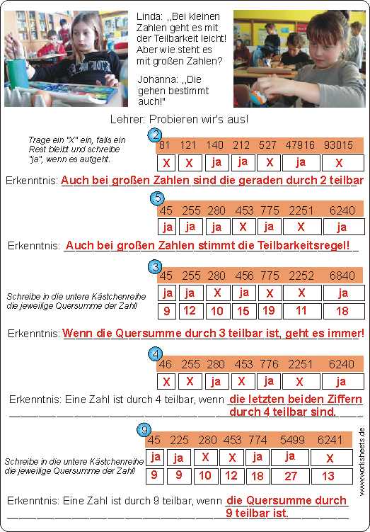 Die Teilbarkeit von Zahlen selbst entdecken (Fortsetzung von Teilbarkeit interaktiv)