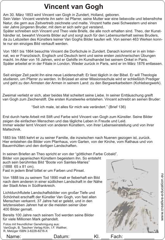 Van Gogh 1853-1890 Lebenslauf mit Text und Bildern