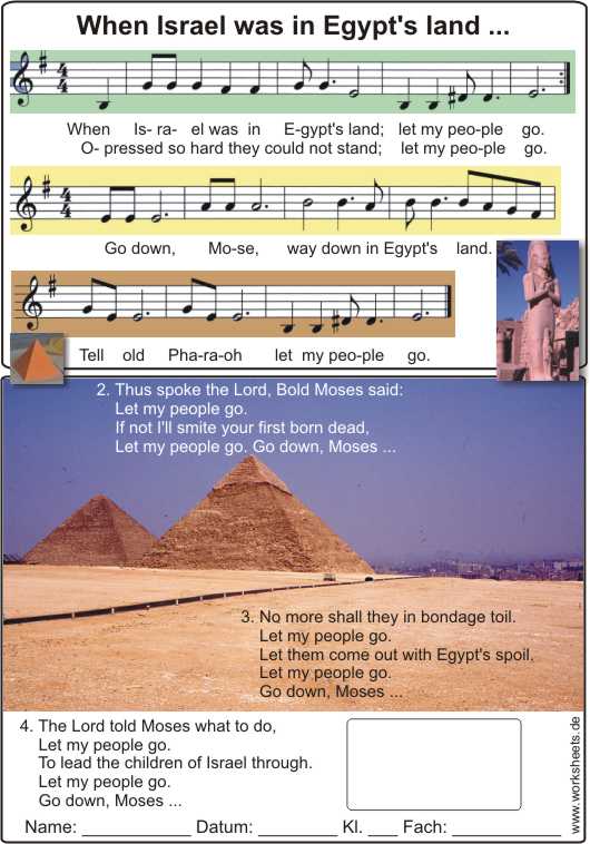When Israel was in Egypt’s land, let my people go. A worksheet with a sheet of music for flutes.